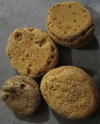 These are little rounded bits of coral I think, with funny markings...they remind me of game markers of some sort.
